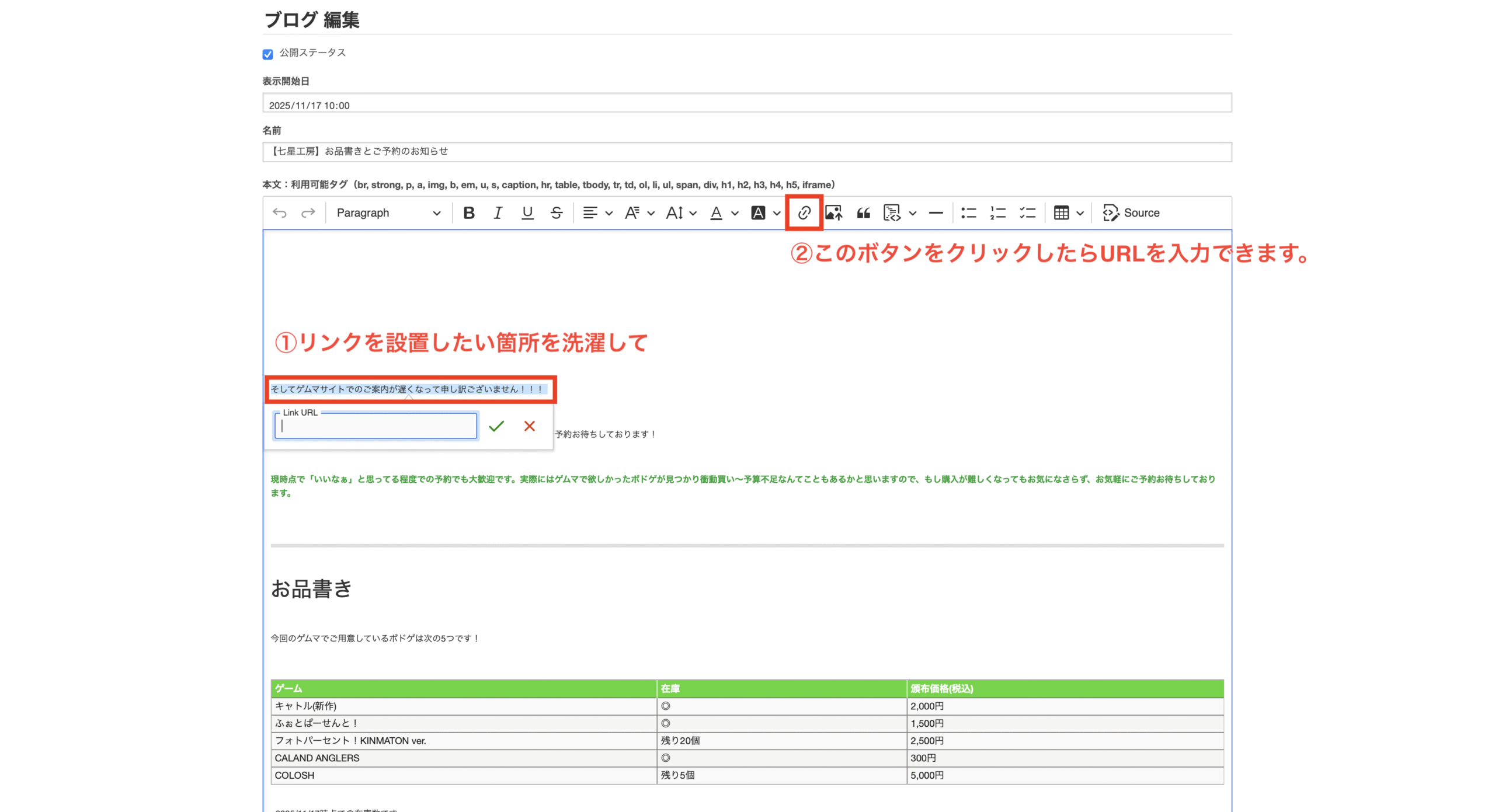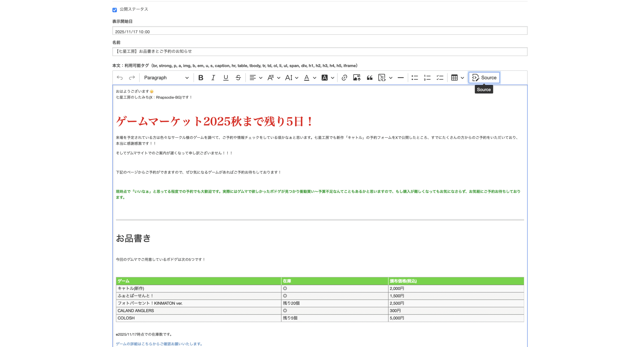 出店者向けの管理サイトでは誰でも使いやすい(=ノーコード)でブログやゲームページを作成できる素敵なシステムが実装されていますが、色々使いにくいんですよねぇ…