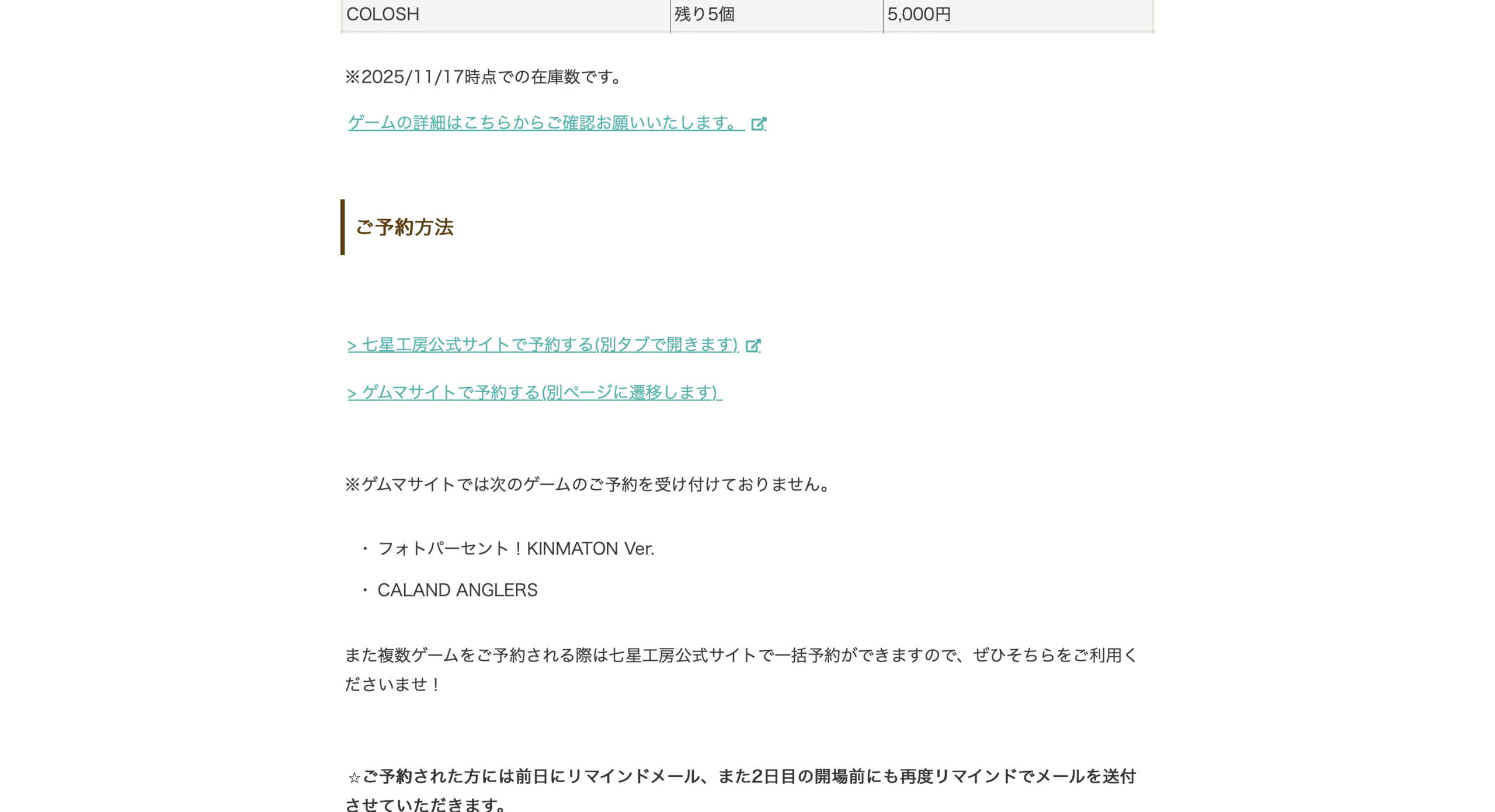 予約以外にもゲームの紹介ページで「詳しいルールはこちら」と書かれていてクリックしたらnoteに飛んでしまって、ゲムマのサイトをもう一回検索し直した…